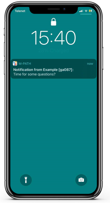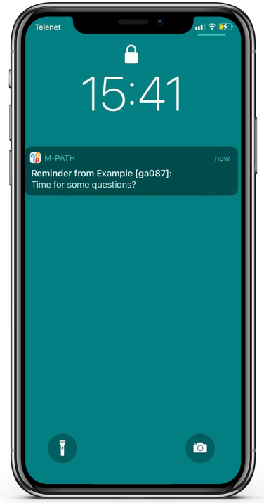 You can set a reminder so if clients did not fill in an interaction, they will be reminded to complete the previous interaction a few minutes later. The notification of the reminder is a different notification than the first one. Its possible to use more than one reminder by separating the reminder times with commas. For example, the following input
