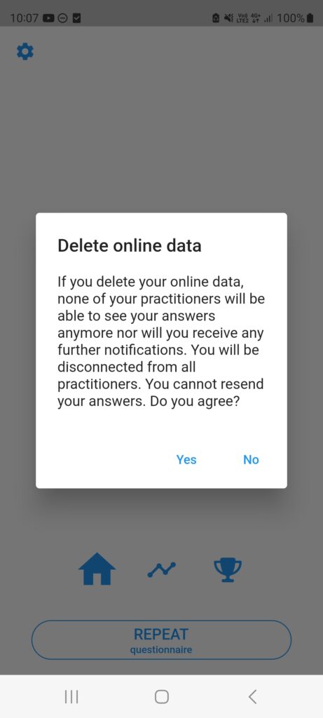 App users (participants) are at any time able to delete their online data. This is a GDPR requirement. To do so, they have to