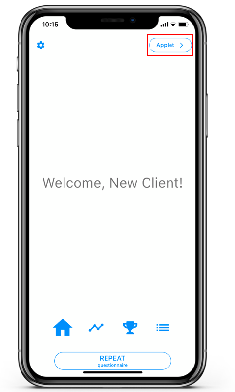 Once you’ve allowed the practitioner to add one or more applets, you will find an applet hotkey in the upper right corner of your m-Path home page.