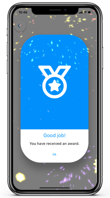 On certain conditions (e.g. when a client filled in all planned questionnaires of a day), an award can be given to you. When an award is given to you, it will pop up on your home page.