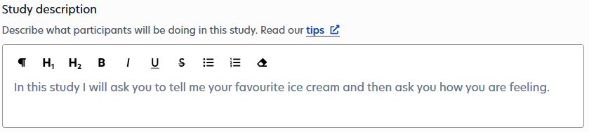 It’s important to make participants aware of the commitment required for a diary study. Hopefully, they have already read the study description on Prolific where this is explained, but it’s best to double-check during your intake survey. If a participant refuses to give consent, Prolific also provides guidance on consent and what to do if they don’t consent.