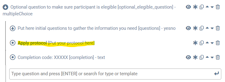 If the user comes to the end of the intake and has given consent and is elegible for participating in your study. Don’t forget to add Apply Protocol to your intake, so that participants’ beeps will get scheduled.