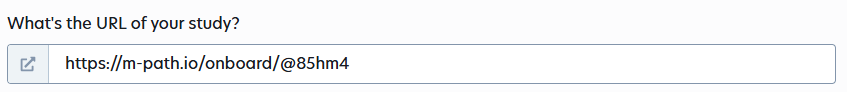 The base URL for onboarding is: https://m-path.io/onboard/ (feel free to copy this link). To use it for your study, you need to add your personal m-Path researcher code, including the @, at the end of the URL. For example, if your reseacher code is @99aa9a, your full URL would be:
