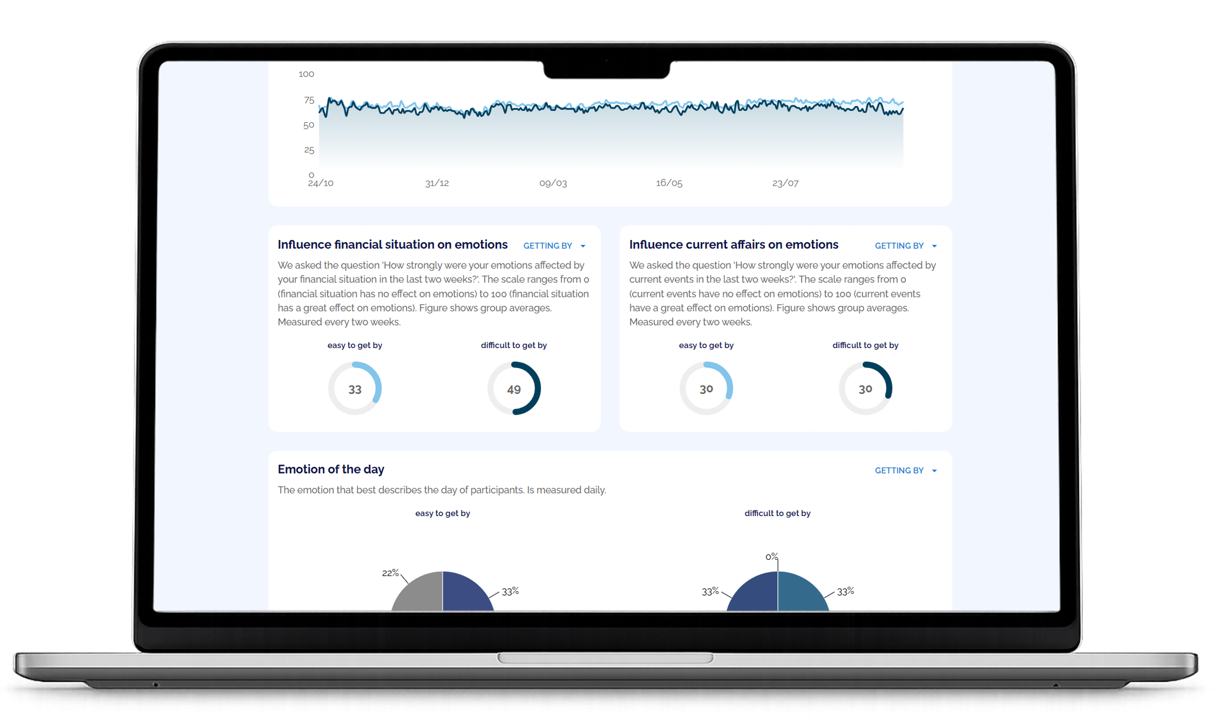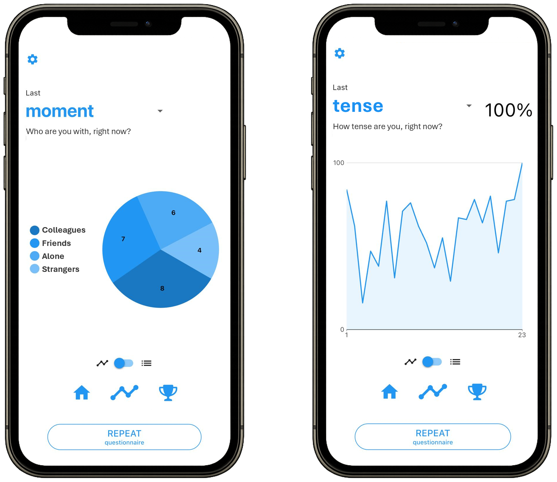 On request, m-Path collaborates with researchers to design custom study pages where participants can view individual responses or aggregated group-level results as part of citizen science projects.